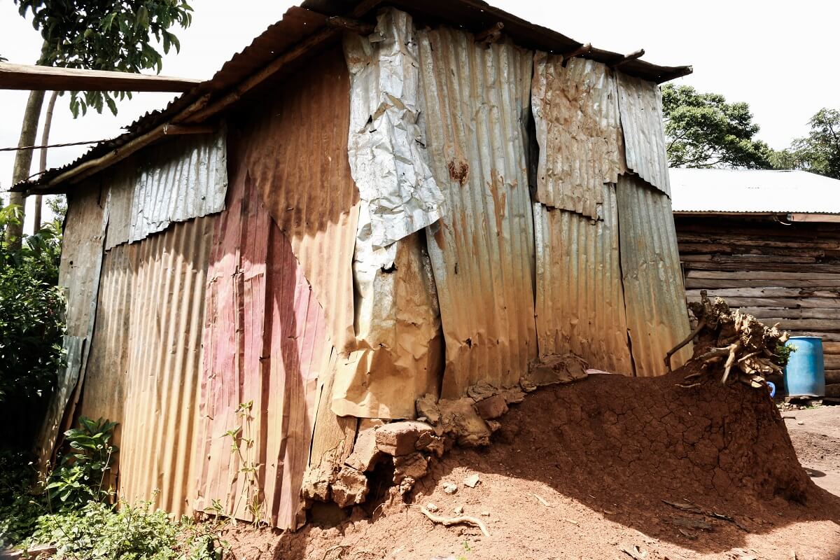 Early the next year around February 2014 a heavy stormy rain washed down their temporary tent house leaving them homeless, everything they had was flooded in water and all that remained was the clothes they had on their bodies; fortunately, they were helped with the children by someone with a shelter to sleep overnight but for the couple, they had to go back to the thatched hut kitchen in which they lit fire all night to make their bodies warm all night so the next day they put up another temporary shelter as their new home which at this time was made of iron sheets all the way out like walls though it came to them as a miracle Mr. Waliigo says “we actually saw its as big step forward since they were able to put up a shelter of iron sheets he continues to say that he always testifies to his congregation that he is the richest man in his area because of having an iron sheet house from top to bottom “.